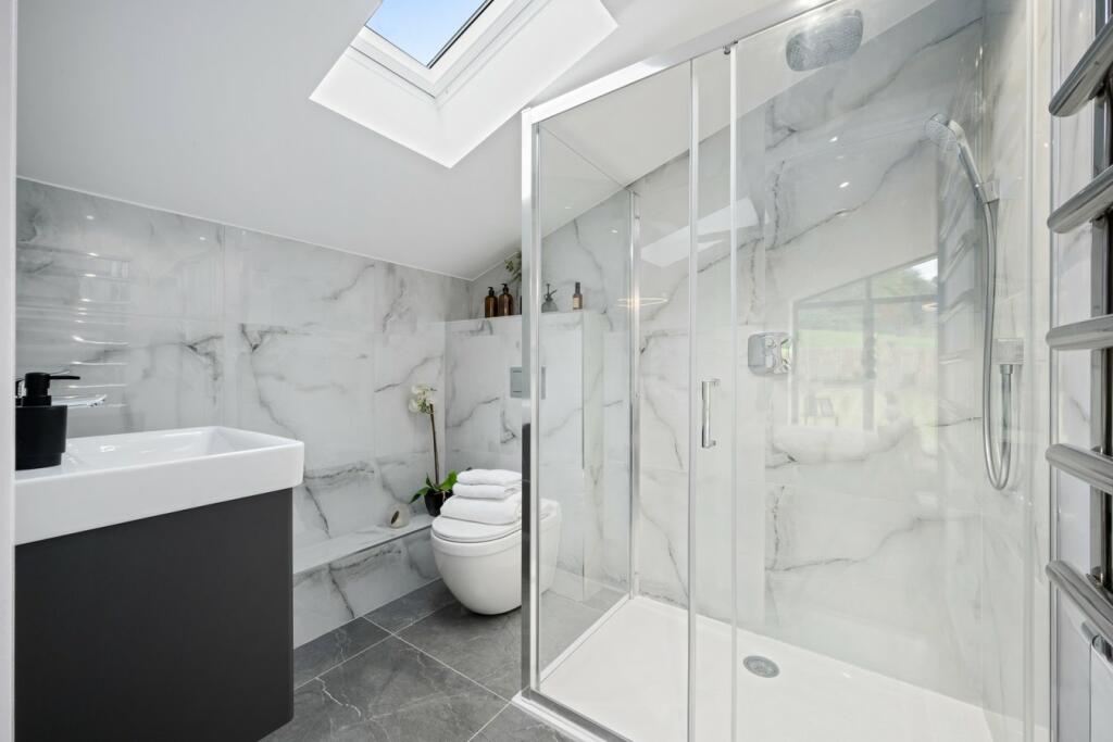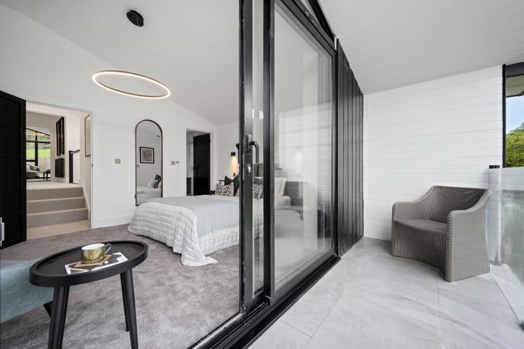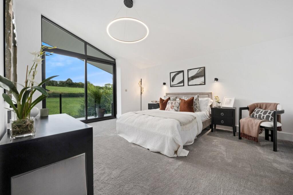To the upper floor four generous sized bedrooms each with an en suite fitted. All bedrooms  with glorious countryside views and two of the bedrooms have sliding doors leading out onto a balcony to take in the countryside air and scenery.
